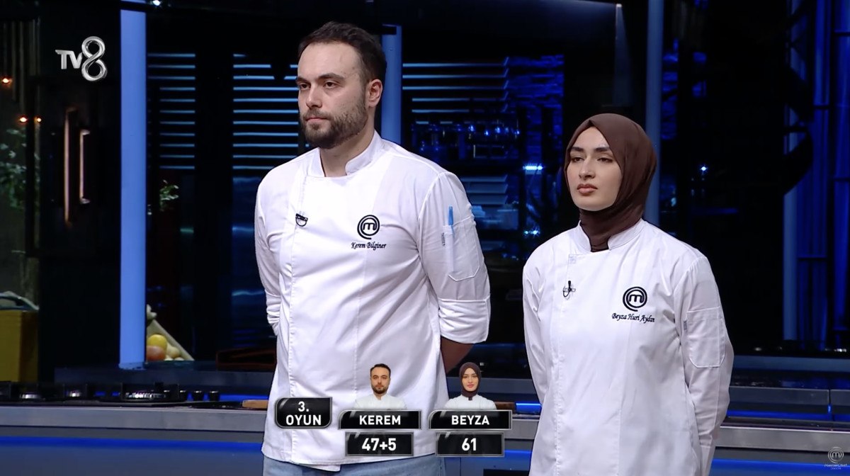 Ana yemeğinde kaşık alarak geceyi 62 puanla noktalayan Kerem, MasterChef’te birinci 4’e kalan son isim oldu. MasterChef hayallerine veda eden ve elenen isim ise Beyza olarak belirlendi.